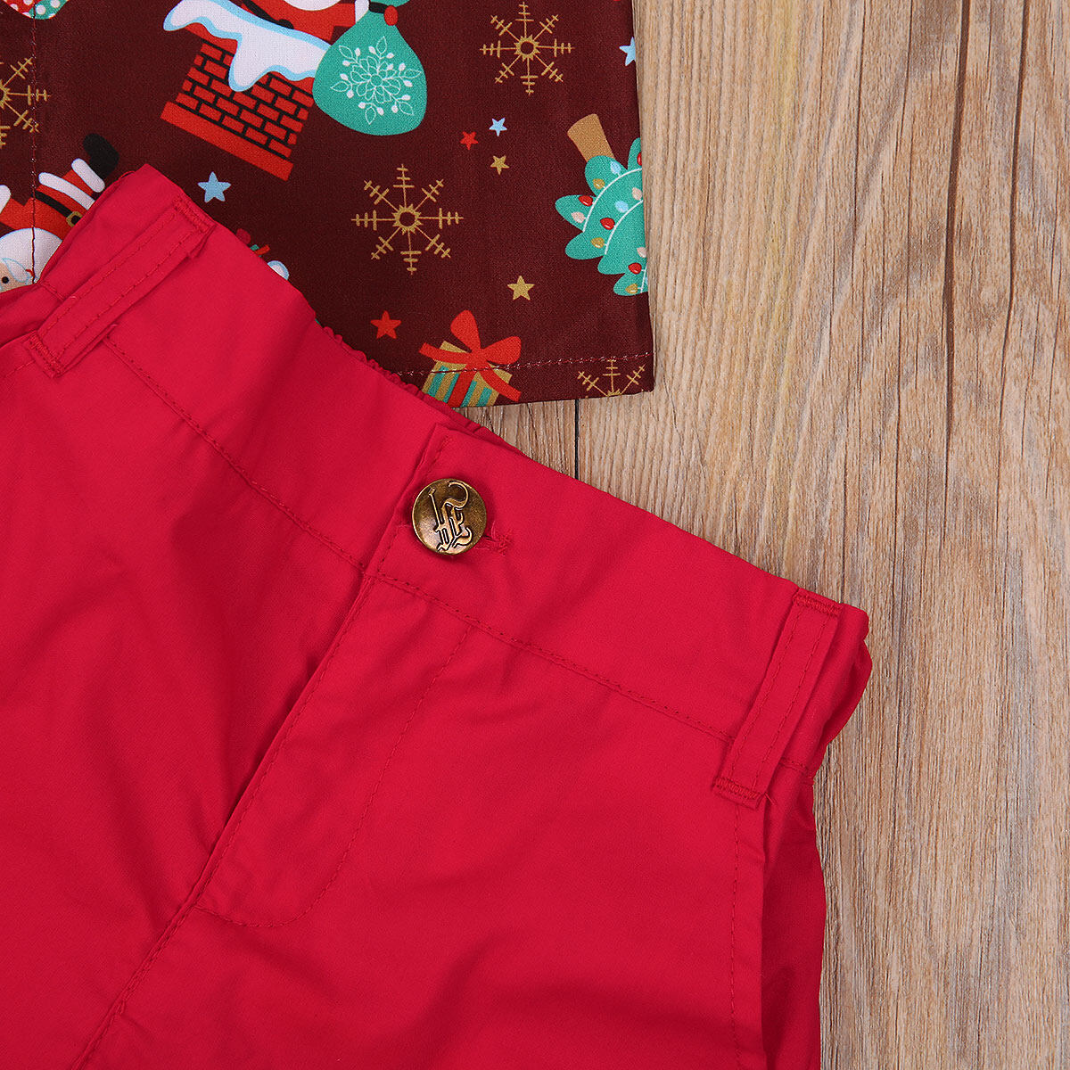 Summer Children’s 2-piece Suit, Solid Color Short Pants, Christmas Themed Print Polo Neck Short Sleeve Casual Suit