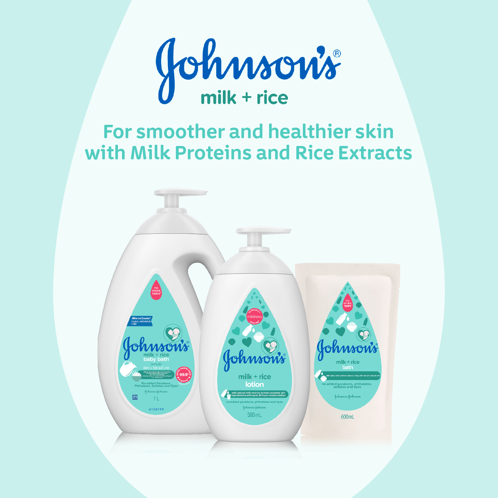 Johnson's® Milk + Rice bath with natural milk and rice extracts to help skin feel soft and smooth. Baby skin loses moisture more quickly than adult skin and still needs gentle care. We have specially designed these products with moisturizers to help keep babies’ skin nourished as they grow.