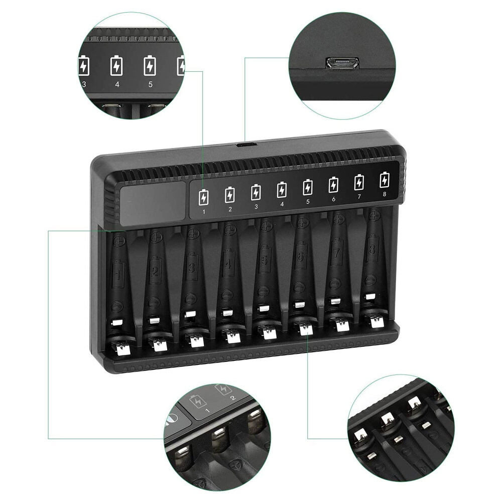 You can connect 1 to 8 aa or aaa Ni-MH batteries.