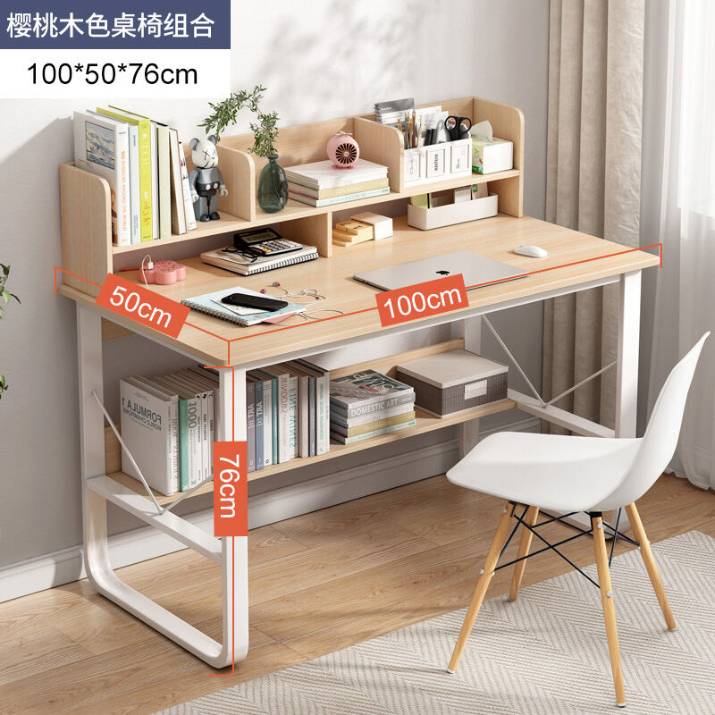 Writing Desk Student Home Junior High School Student Desk with Chair Bookshelf Integrated Computer Desk Simple Bedroom Desk