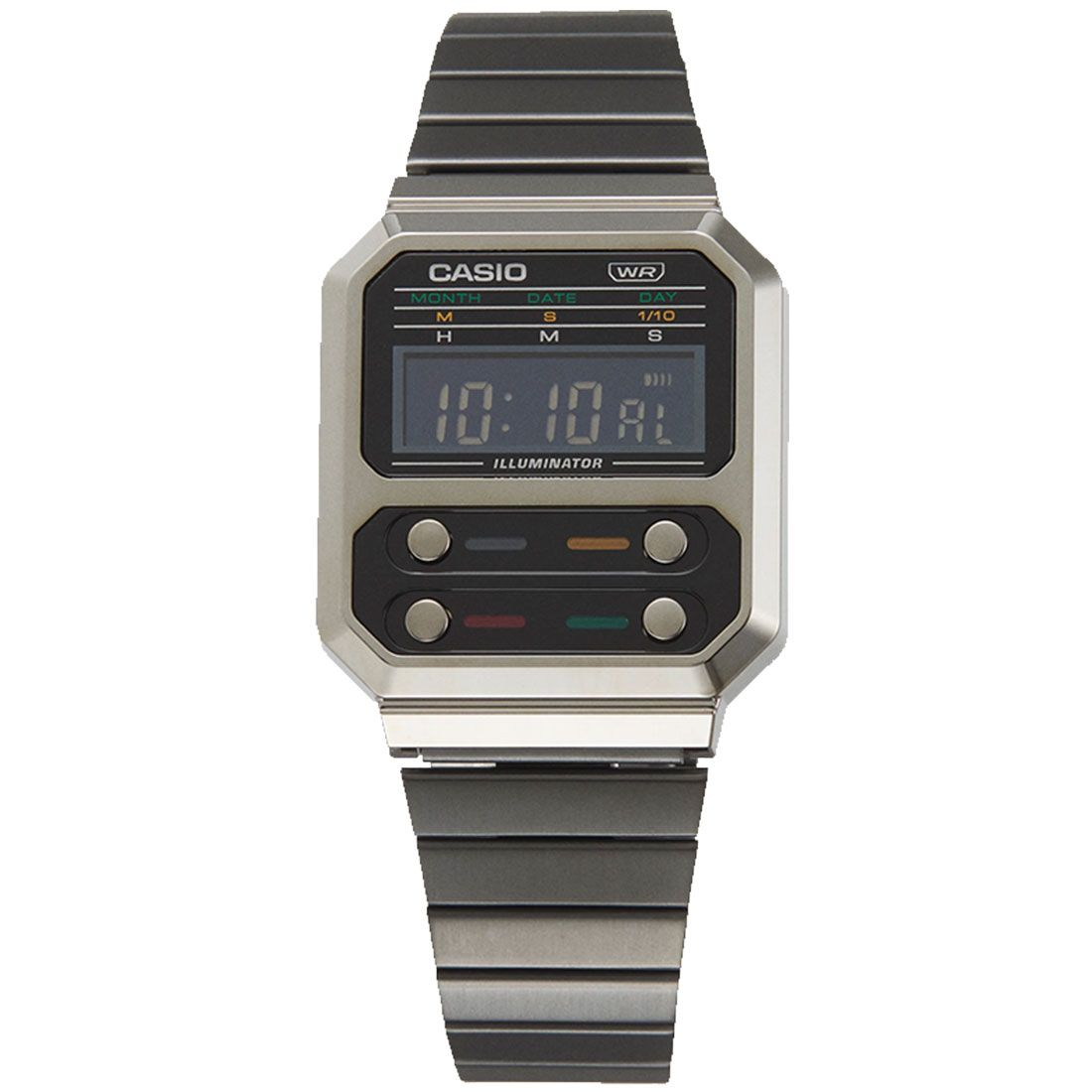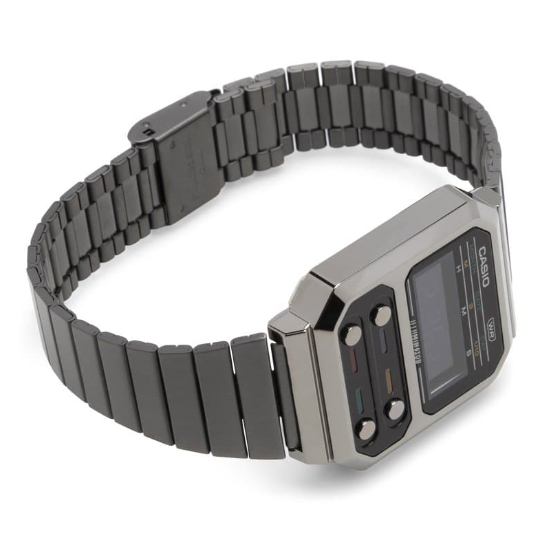 [Vinstore] Casio A100 "Pac Man" Adjustable Grey IP Stainless Steel Strap Quartz Digital Tribute Alien Men Watch A100WEGG-1ADF A100WEGG-1A A100WEGG-1
