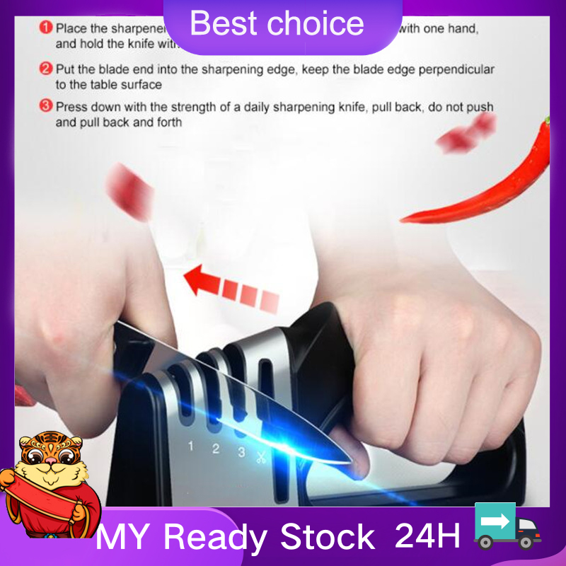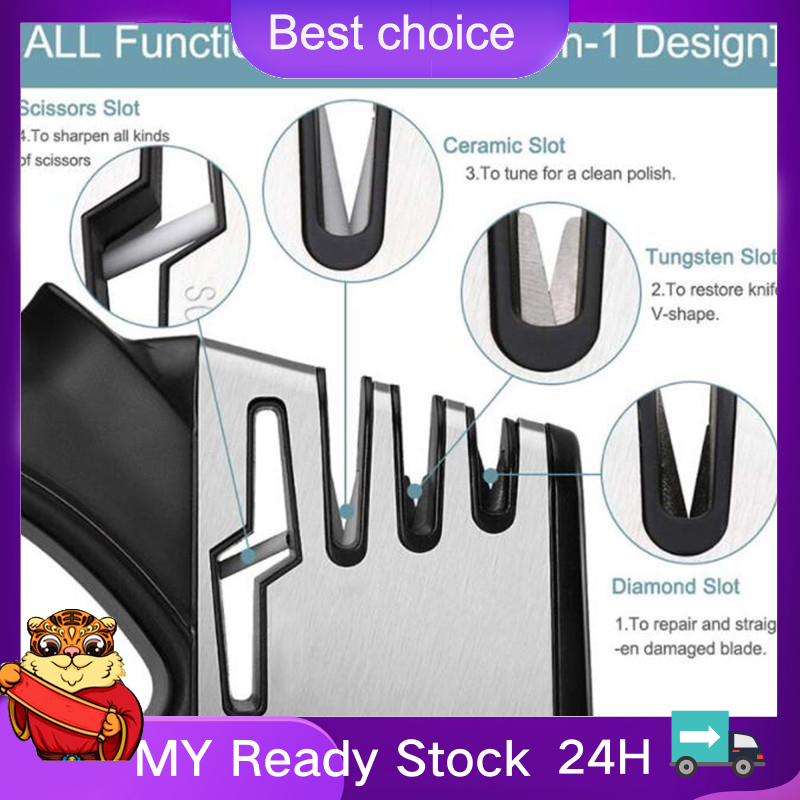 Suitable for straight knives and scissors; Designed with incredible 4-slot system; Non-slip base makes the sharpener steady; Ergonomic handle ensures comfortable and stable grip; Easy to use Specifications Color: black/green Material: ABS+silicone+tungsten steel+ceramic+diamond Size: 200*95*40mm Package list: 1*knife sharpener Descriptions: * Material: Hard blades, ABS, silicone, tungsten steel, diamond and ceramic, durable material. * 4-stage knife sharpener: With our incredible 4-slot system, including diamond sharpening rod for coarse, ceramic sharpening rod for fine sharpening and polish, tungsten sharpening rod for blunt blades and scissors sharpening rod. * Application: Designed for straight knives, such as, chef knife, steak knives, steel knives and scissors and more. * Non-slip base: Anti-skid silicone base makes the sharpener steady and easy to hold. * Handle: Ergonomic handle ensures comfortable and stable grip when sharpening. * Easy to use: Simply position the dull blade on the sharpening slot and make razor-sharpness in just seconds. * Warm tips: 1. Not suitable for serrated blades and ceramic knives. 2. Please keep the sharpening tool clean and dry. * Notes: 1. Please allowed 1-3mm differences due to manual measurement, thank you! 2. Due to the difference between different monitors, please understand that the picture may not reflect the actual color of the item. Packing list Package list: 1*knife sharpener