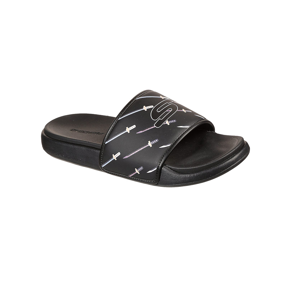 Keep your summery style sleek and comfortable in the SKECHERS One Piece Gambix 2.0 sandal, a special limited edition shoe with colorways and decorations inspired by characters from the best selling manga of all time, One Piece®. Features a leather-textured synthetic upper in a sporty casual comfort slide sandal with cushioned comfort footbed.