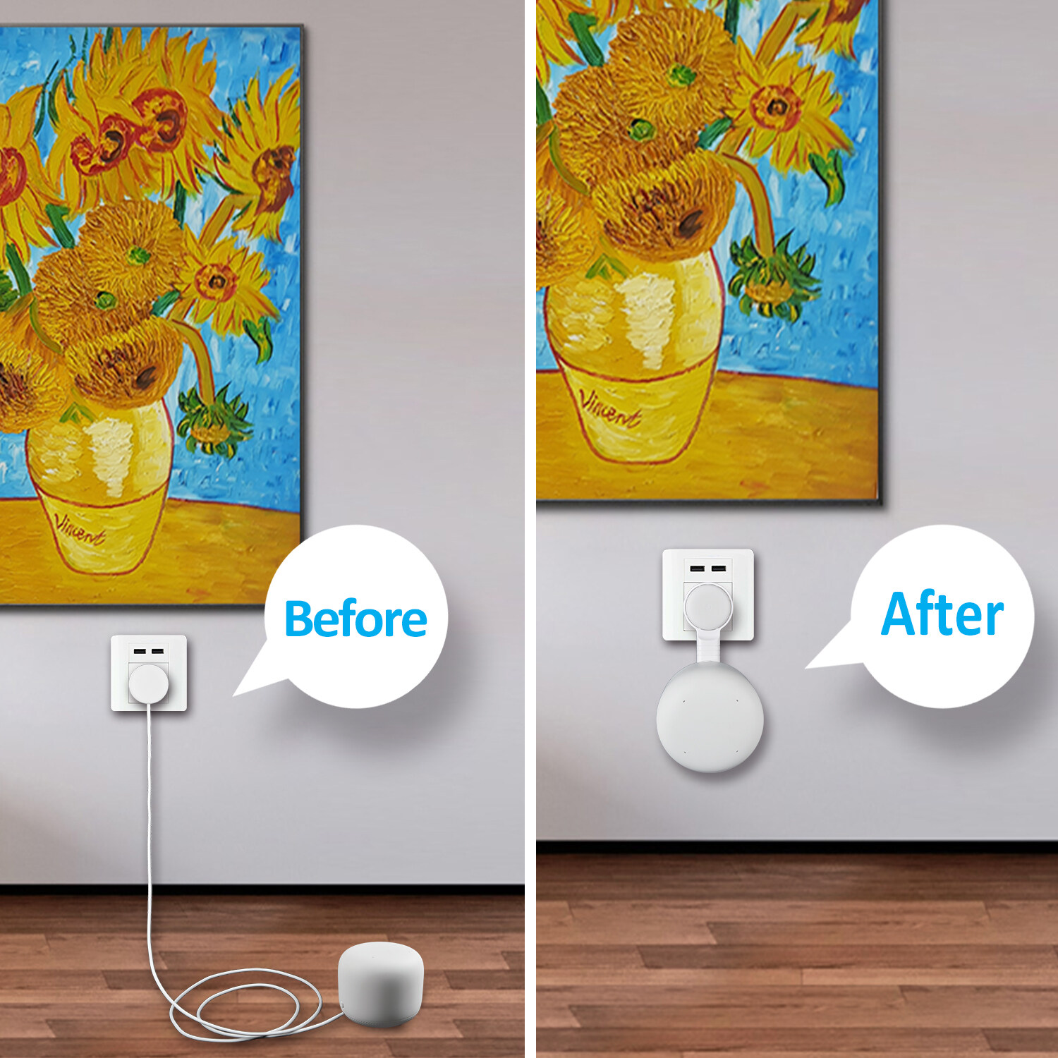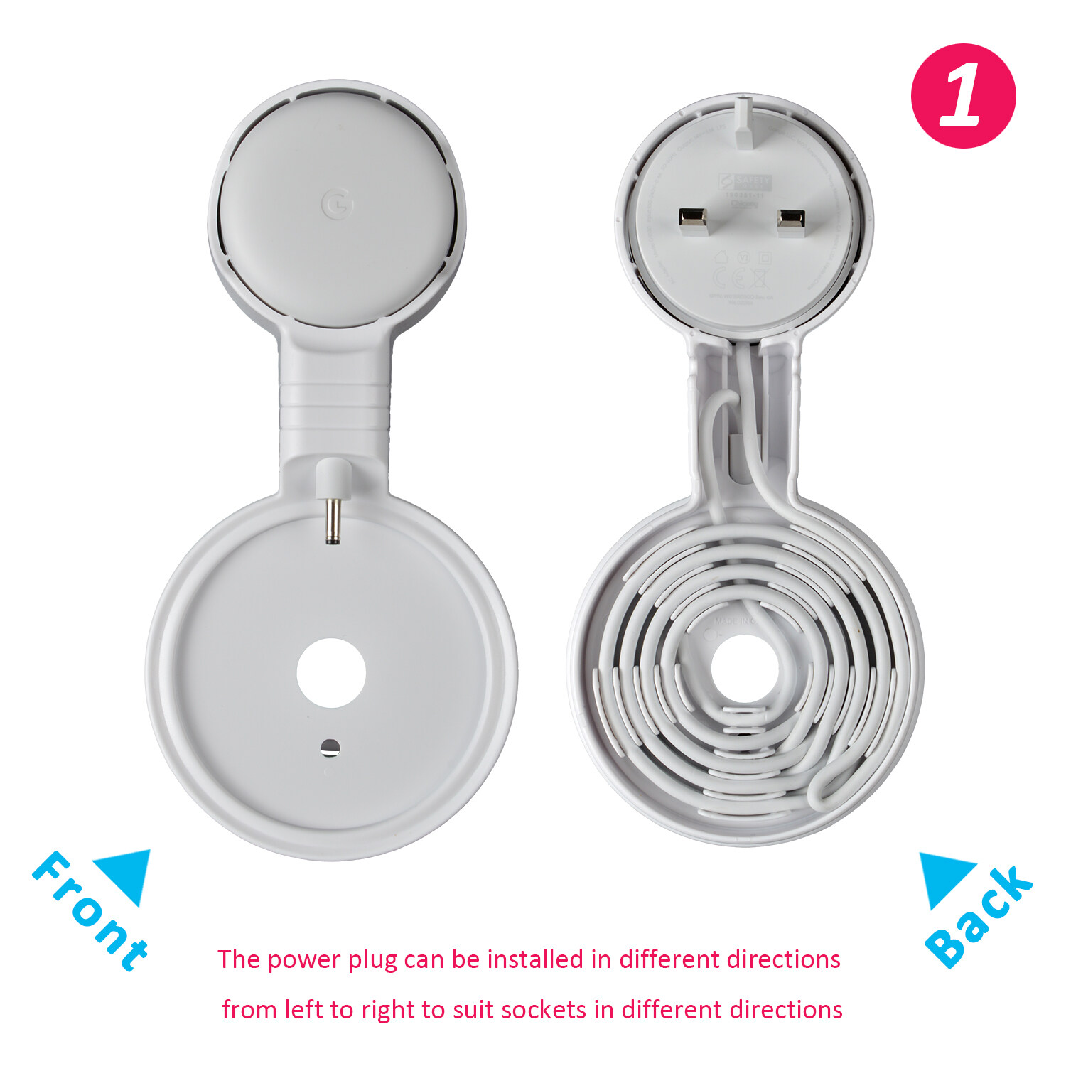 • CORD MANAGEMENT and STURDY --- The cable can be wrapped through the reels which is back of the google nest point wall mount where is specially designed for the Google nest wifi Point to hide the messy wires . From then on , say goodbye to the meesy wires .